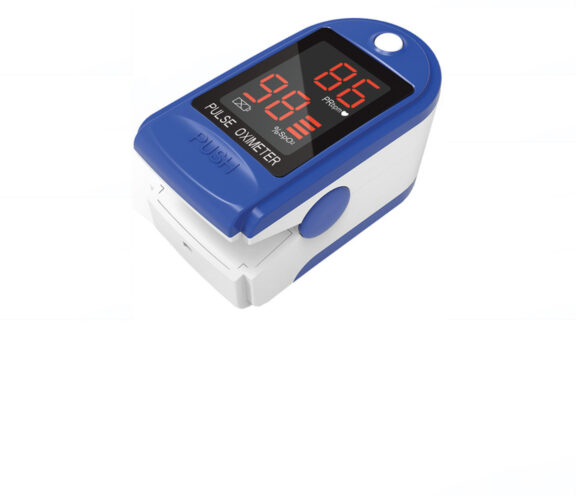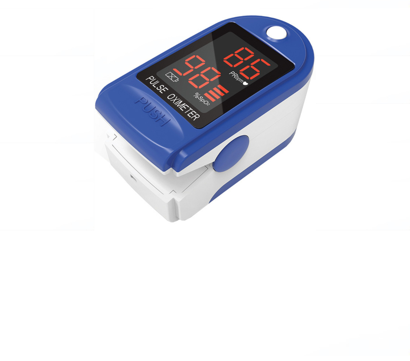 Saturimetro da dito per la misurazione della saturazione di ossigeno e della frequenza cardiaca.