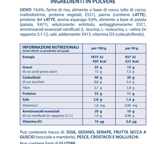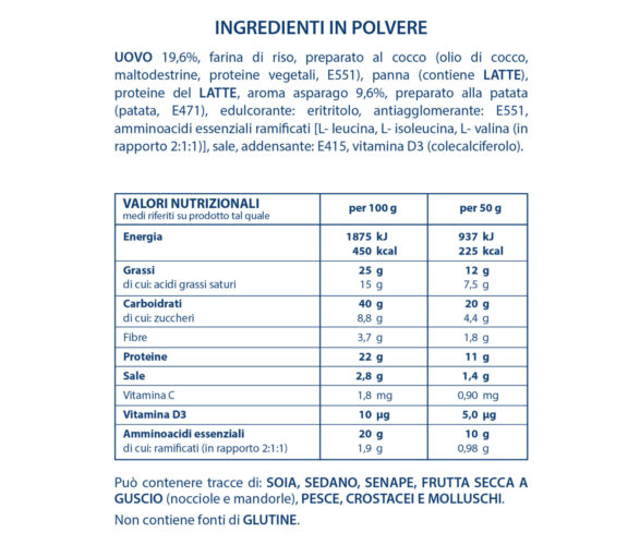 PREPARAZIONE ALIMENTARE DISIDRATATA AL GUSTO DI UOVO E ASPARAGI (5 buste da 50 g)