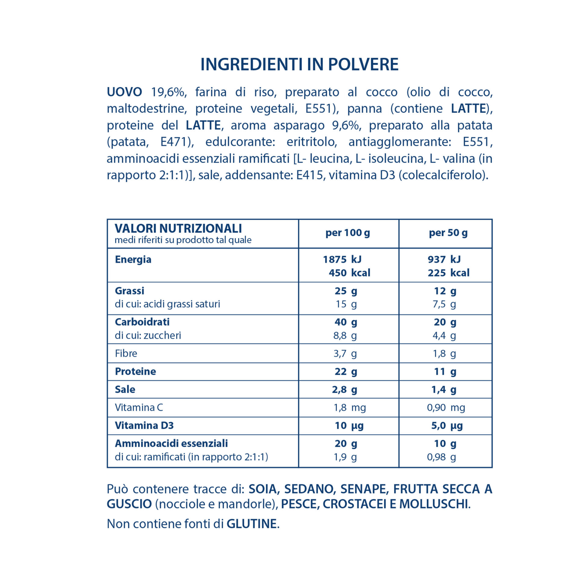 PREPARAZIONE ALIMENTARE DISIDRATATA AL GUSTO DI UOVO E ASPARAGI (5 buste da 50 g)