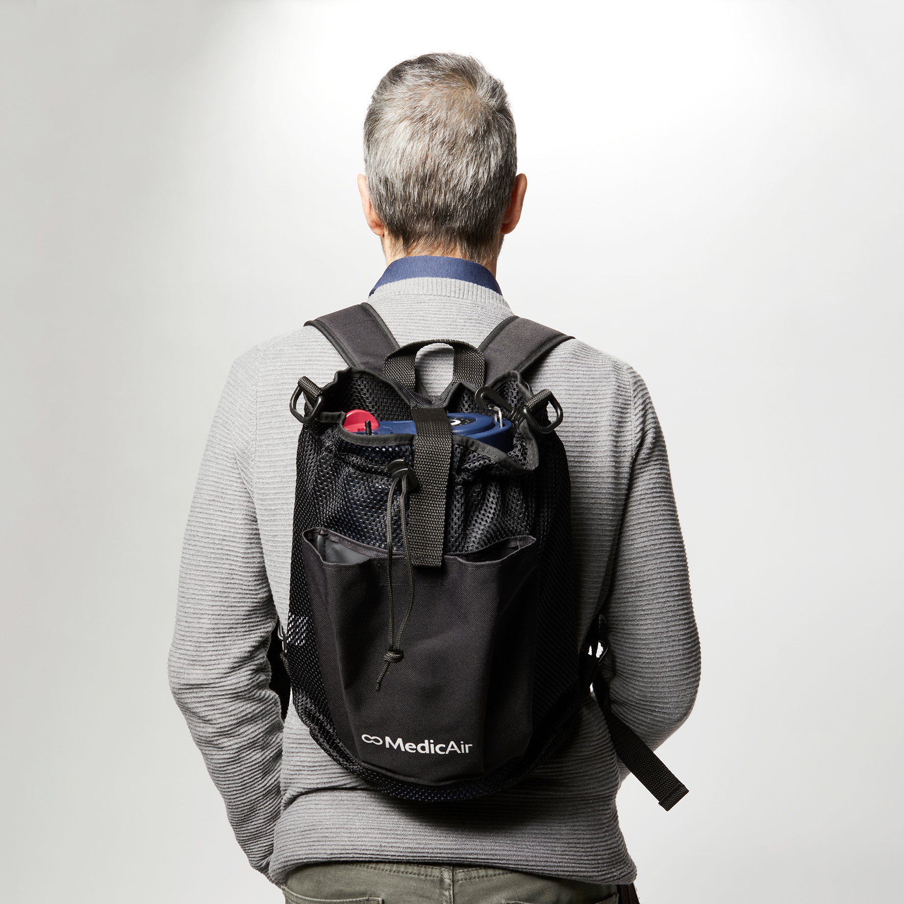 Zainetto porta stroller in nylon traspirante con bretelle e tracolla regolabili.